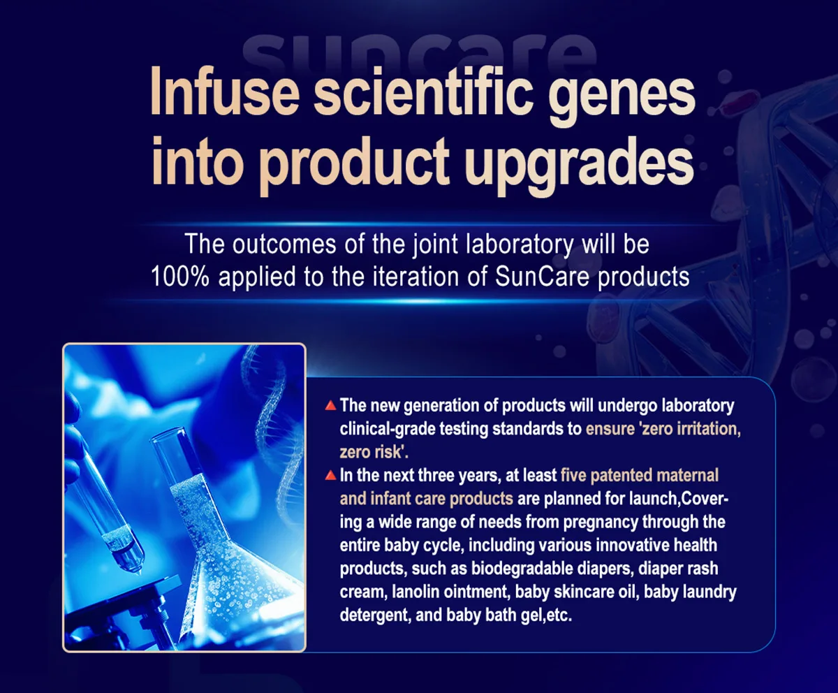 In the next three years, at least five patented maternal and infant care products are planned for launch,Covering a wide range of needs from pregnancy through the entire baby cycle, including various innovative health products, such as biodegradable diapers, diaper rash cream, lanolin ointment, baby skincare oil, baby laundry detergent, and baby bath gel,etc.